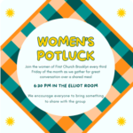 - 16Women’s Potluck6:30 pm - 8:30 pm